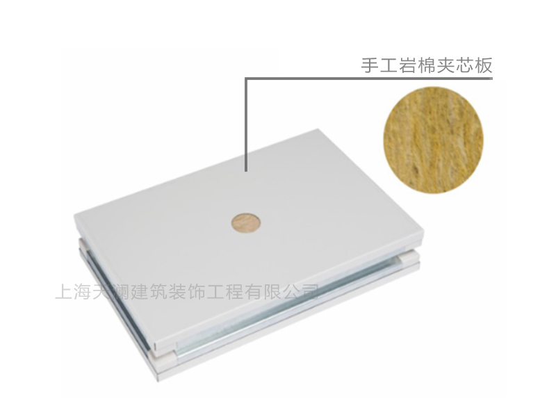 手工巖棉夾芯板構成:雙層鋼板,內夾巖棉/礦棉夾芯材料,采用手工制作工藝。巖棉又稱(chēng)巖石棉是礦物棉的一種,以天然巖石及礦物等原料制成的蓬松狀短細纖維,不可燃。