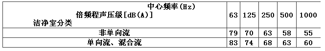 4.4.1 潔凈室內的空態(tài)噪聲級,非單向流潔凈室不應大于60dB(A),單向流、混合流潔凈室不應大于65dB(A)。