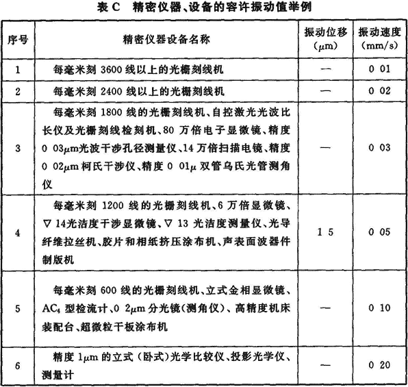 附錄C 精密儀器、設備的容許振動(dòng)值舉例