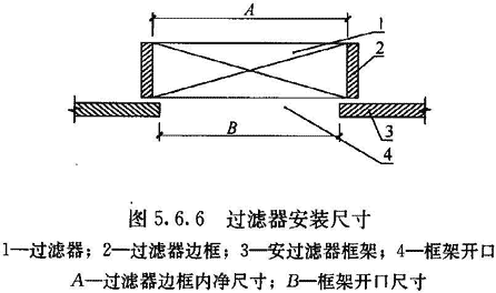 5.6.6 送風(fēng)末端過(guò)濾器安裝前,應再次檢查承載過(guò)濾器的框架開(kāi)口尺寸,開(kāi)口尺寸不得大于送風(fēng)末端過(guò)濾器的邊框內凈尺寸(圖5.6.6)。