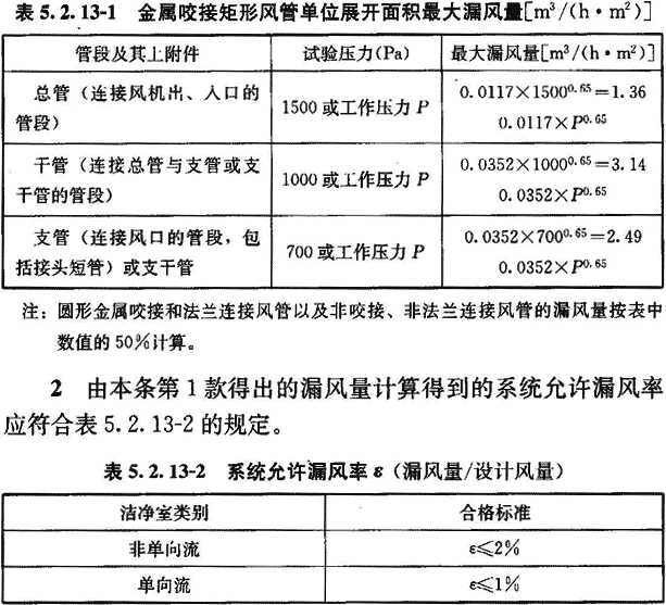 8 風(fēng)管漏風(fēng)量和漏風(fēng)率應符合本規范表5.2.13的規定。