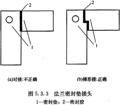 5.3.3 法蘭密封墊宜減少接頭,接頭應采用階梯形或企口形并避開(kāi)螺栓孔(圖5.3.3),也可采用連續灌膠成型或沖壓一體成型的密封墊。
