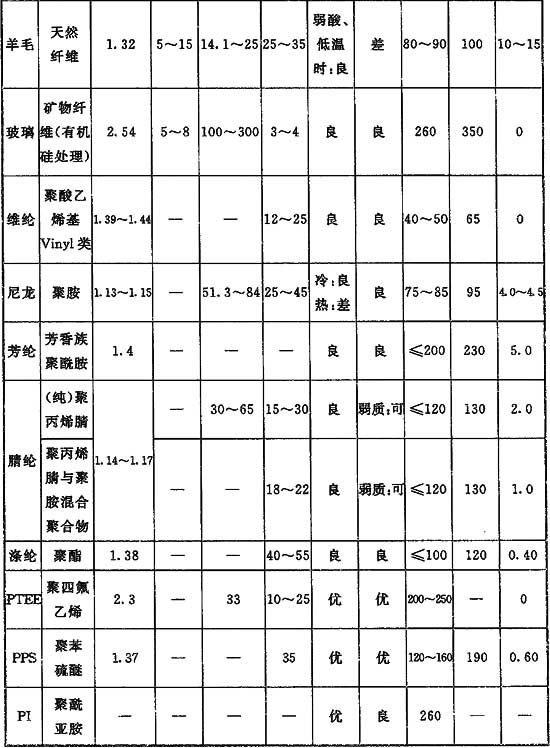 濾料性能應滿(mǎn)足生產(chǎn)條件和除塵工藝的要求,濾料的主要性能包括耐溫性能、耐酸堿性能等,選擇濾料應對各種因素進(jìn)行對比,抓住主要影響因素選擇濾料。應盡可能選擇使用壽命長(cháng)的濾料。表面過(guò)濾方式已被公認為有助于提高除塵效率,濾料表面覆膜可實(shí)現濾袋表面過(guò)濾,常用的覆膜材料如聚四氟乙烯(PTFE)。選用覆膜濾料會(huì )增加造價(jià),因此宜在技術(shù)經(jīng)濟條件合理時(shí)選用。常用濾料的物性指標總結在表4中。