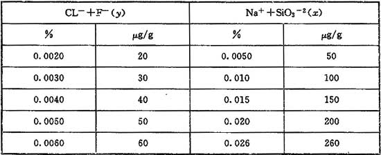 x——測得的(Na++SiO32-)離子含量<0.005%。